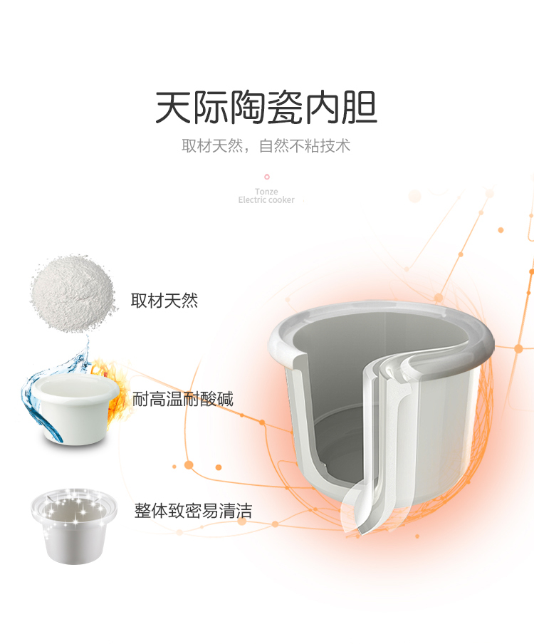 Tonze/天际 DGD10-10CD电炖锅陶瓷煮粥锅BB煲汤锅预约自动 1L
