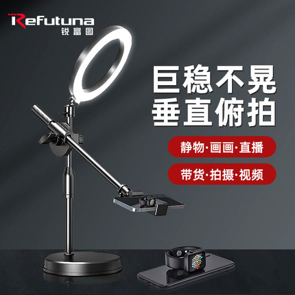俯拍更稳】手机支架桌面俯视拍摄美食书法开箱专用直播网课录拍视频拍照神器带补光灯防抖自拍杆支撑架子