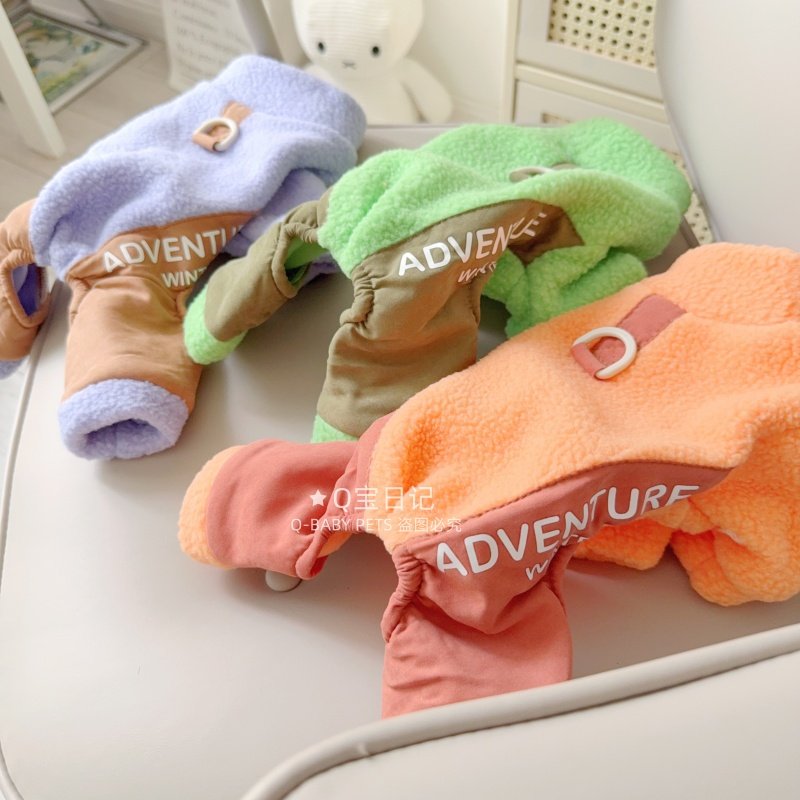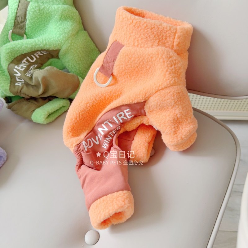 【帅气潮萌】可牵引宠物比熊雪纳瑞泰迪狗狗衣服秋冬装四脚衣户外