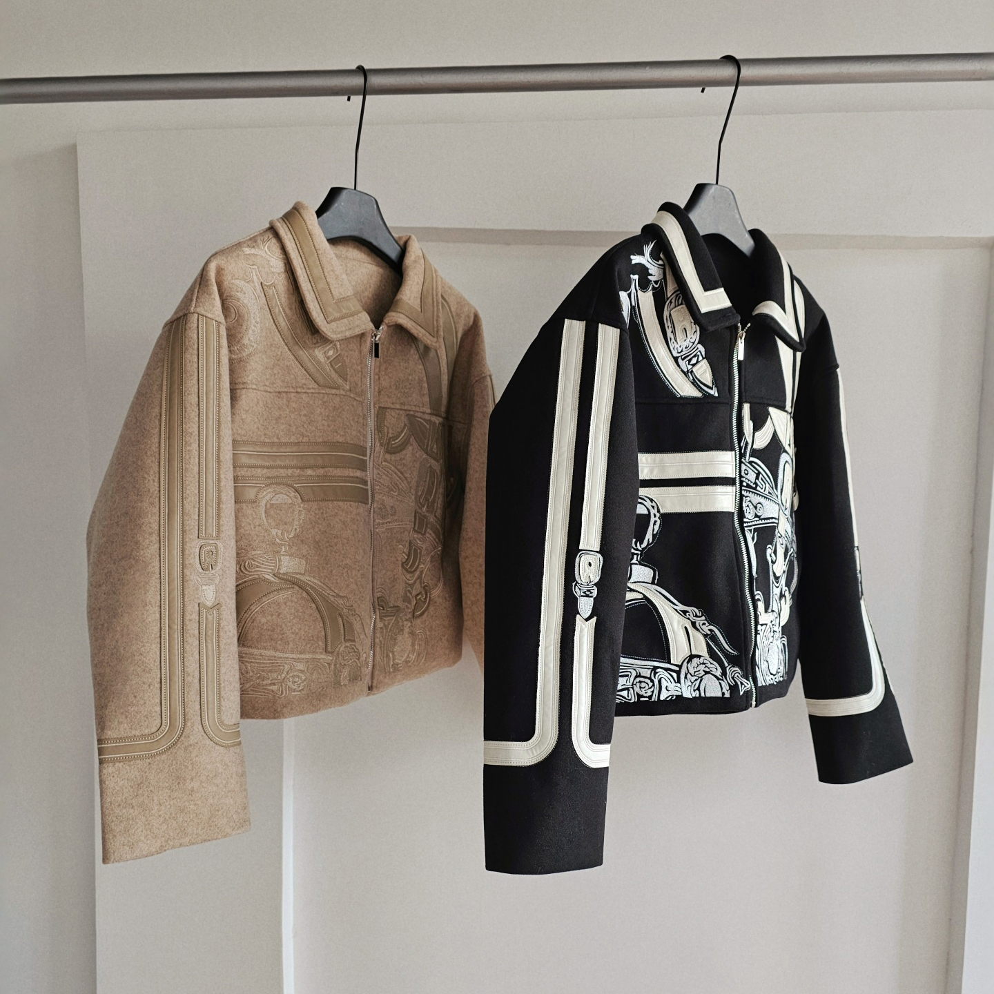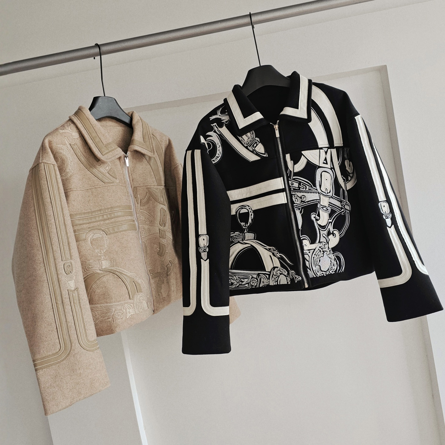 轻奢H家设计师款重工刺绣加厚毛呢外套翻领大衣女老钱风夹克上衣