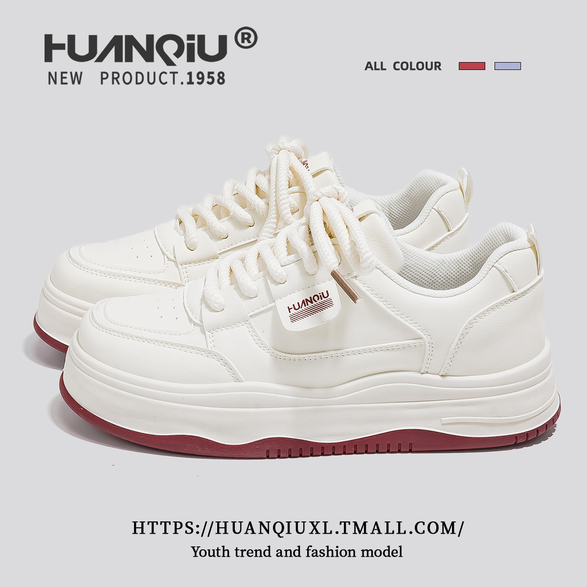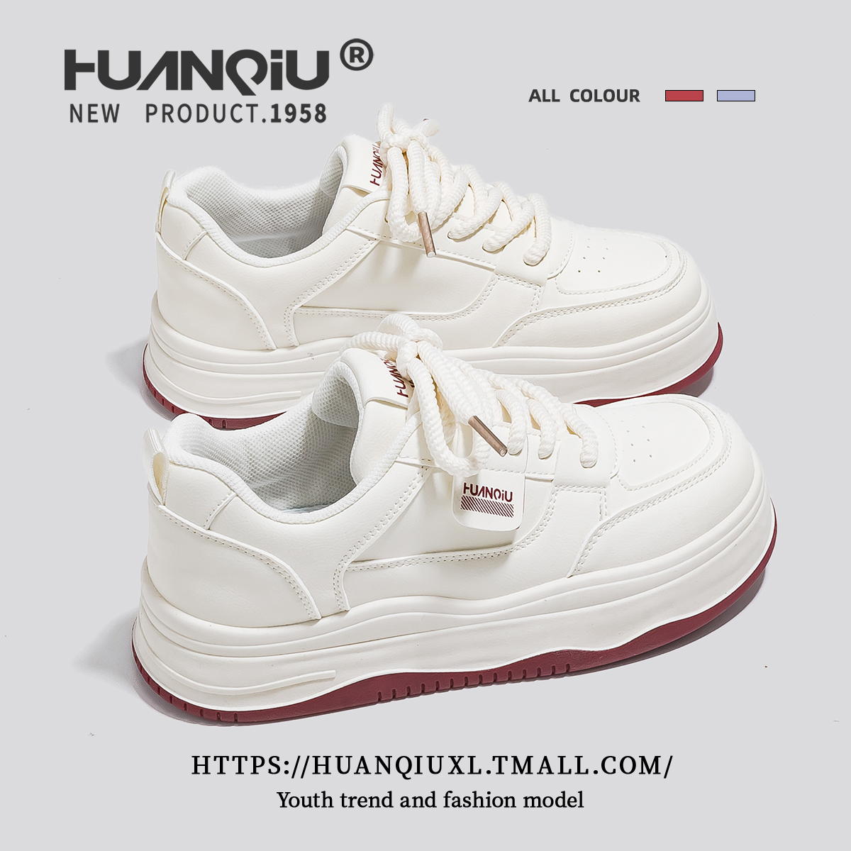 环球厚底板鞋女2025松糕软底红色小白鞋百搭校园休闲爆款增高女鞋