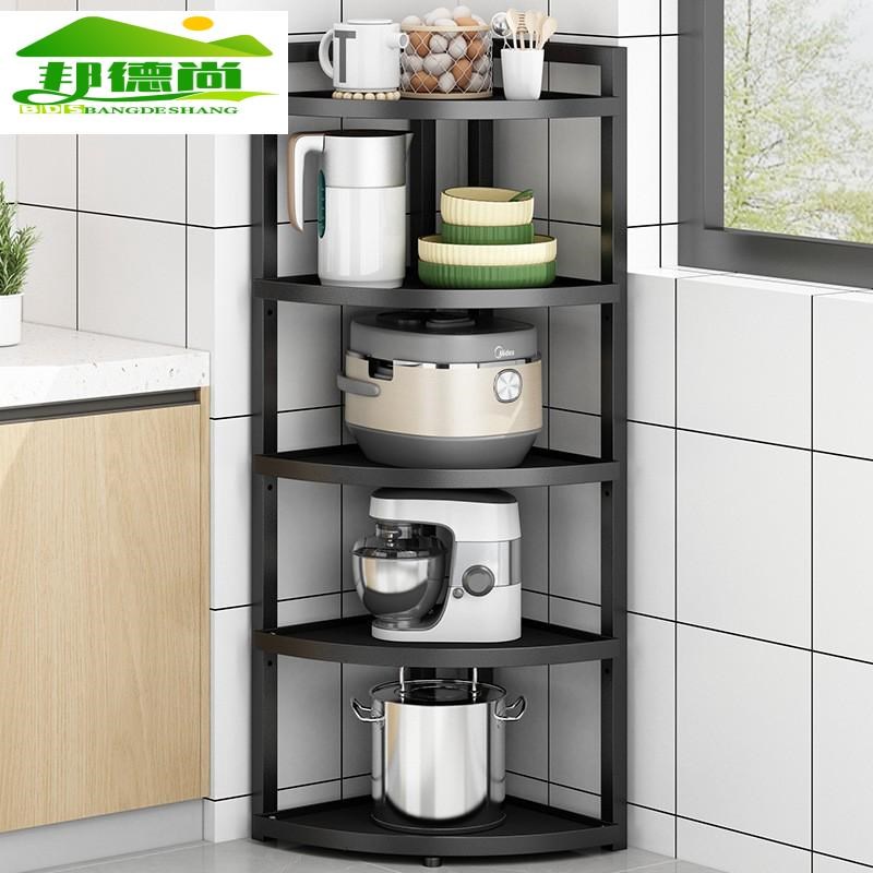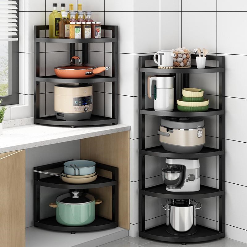 锅架厨房置物架落地转角三脚收纳架子家用放锅具多层可调扇形储物