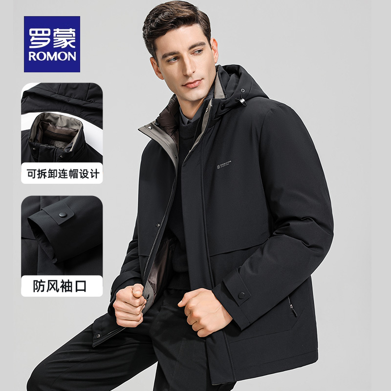 【一衣三穿】罗蒙男士可脱卸内胆羽绒服2025冬季新款保暖短款外套