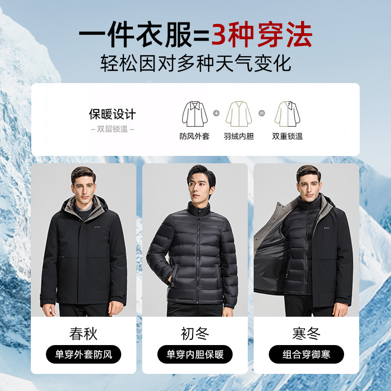 罗蒙男士一衣三穿可拆内胆羽绒服