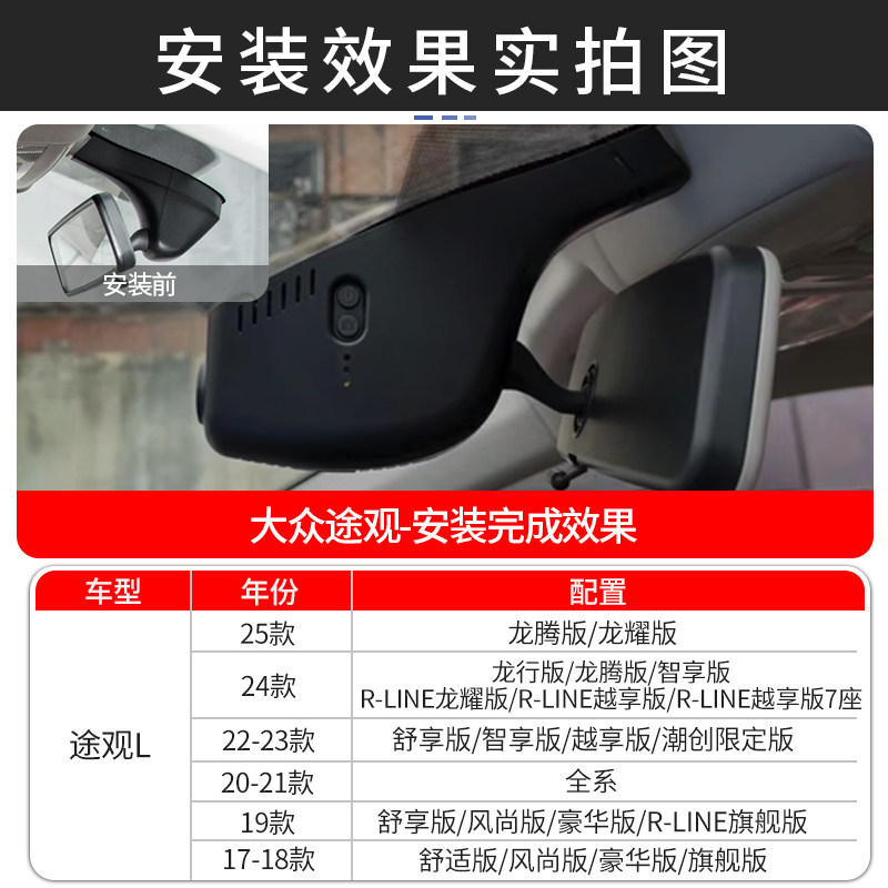 10-2025款26新款上汽大众途观lpro途观L行车记录仪专车专用免走线