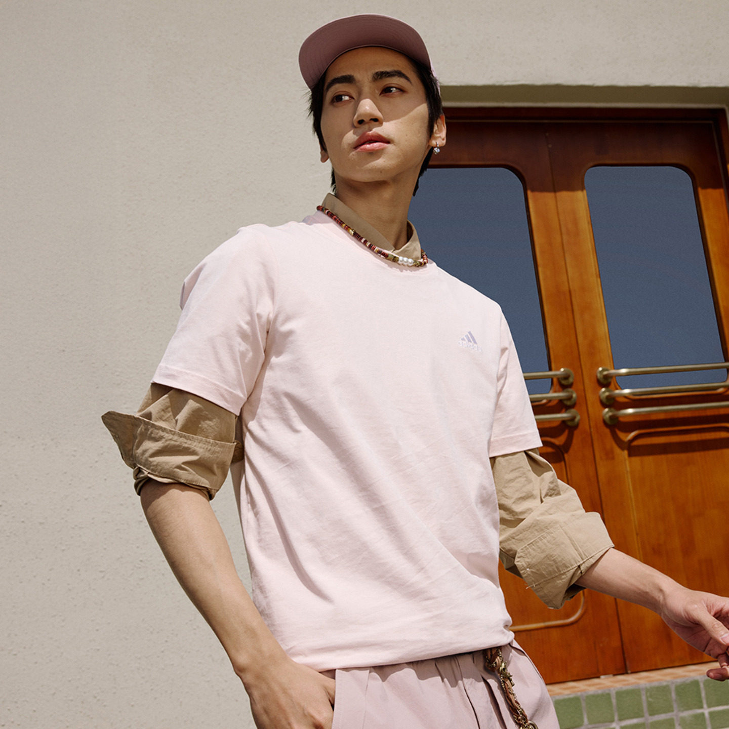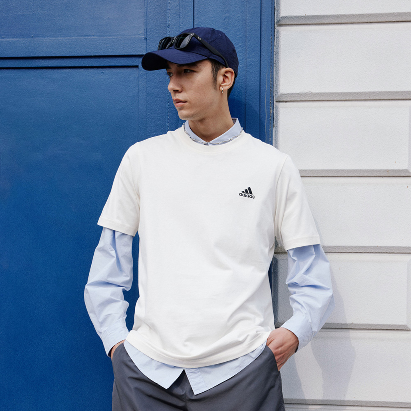 情侣款纯棉休闲上衣圆领短袖T恤男女夏季adidas阿迪达斯轻运动