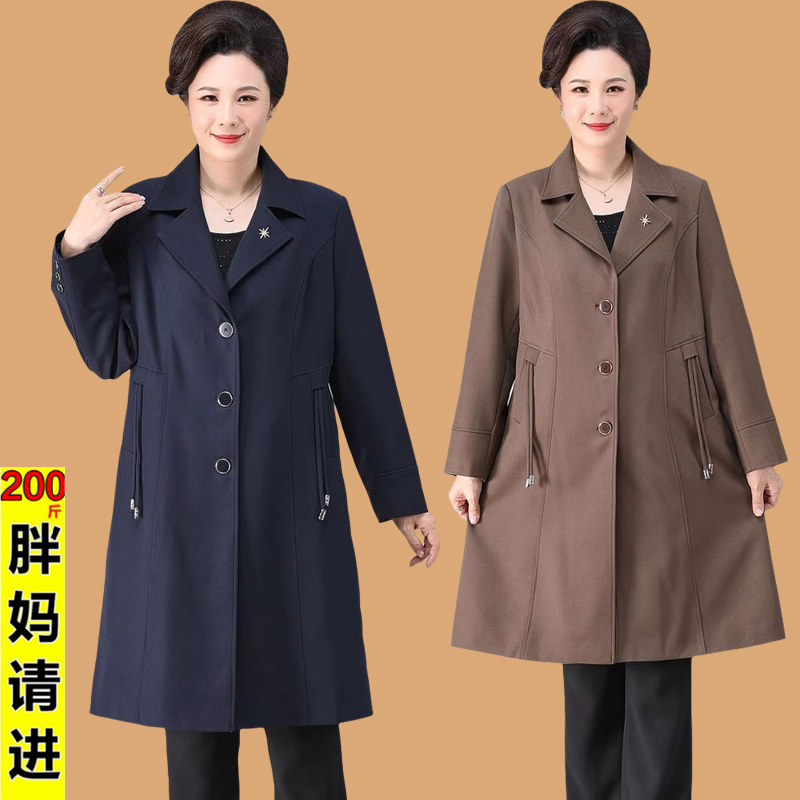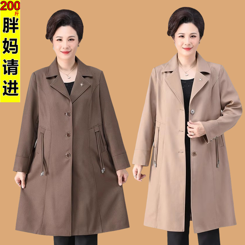 中老年女装洋气时尚风衣外套220斤胖妈妈加肥加大码中年妇女春秋