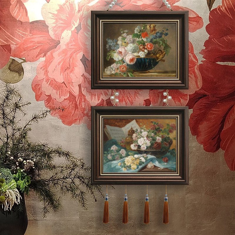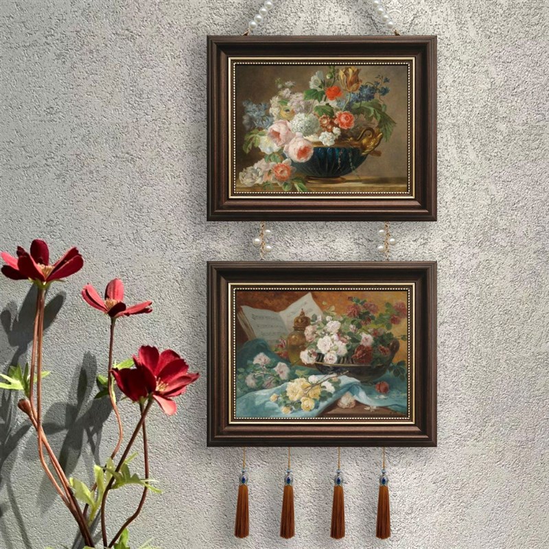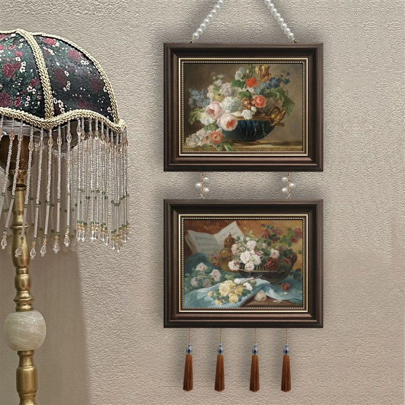 装饰画挂画两联带珠链美式法式现代欧式餐厅客厅沙发两联流苏