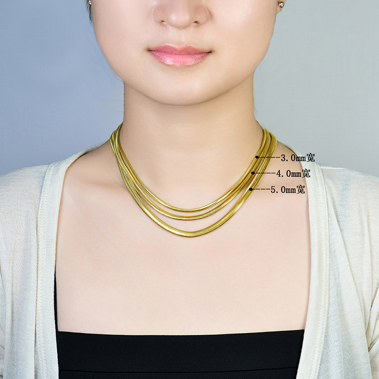 卓蝶珠宝S925纯银镀18K金扁蛇骨链金色ins风锁骨链时尚百搭颈链女