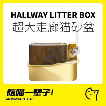 月饼喵│萌尾猫砂盆全封闭走廊式防外溅超大号猫砂盆特大猫厕所