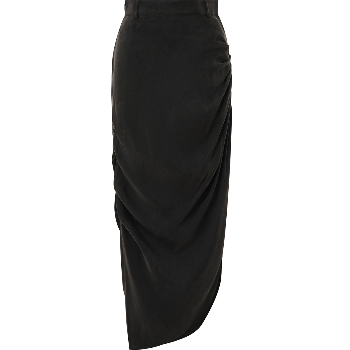 NuagesFroufrou长绒天丝黑色立体裁剪褶皱开叉半身裙优雅复古