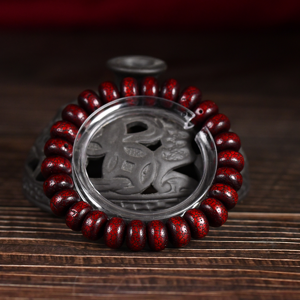 收藏级藏式桶珠老星月菩提朱砂供单圈手串玉化包浆风化开片文玩