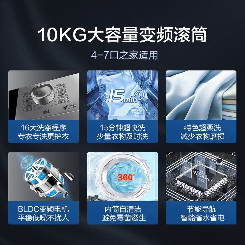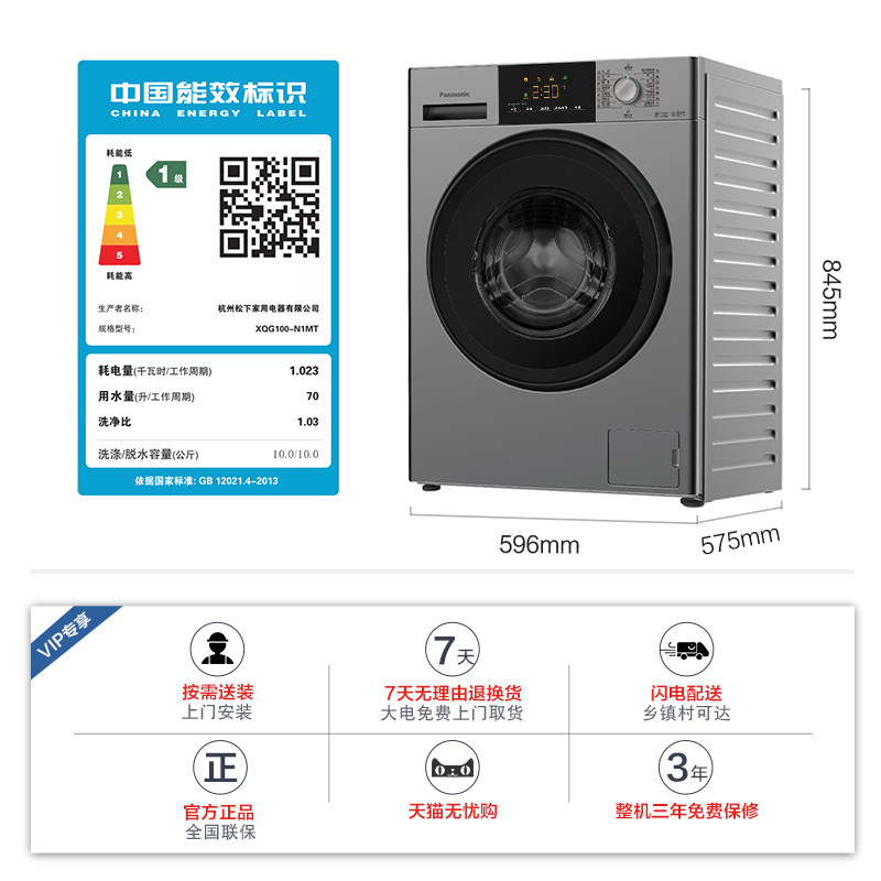 松下洗衣机官方旗舰店滚筒10公斤大容量家用变频电机泡沫净N1MT