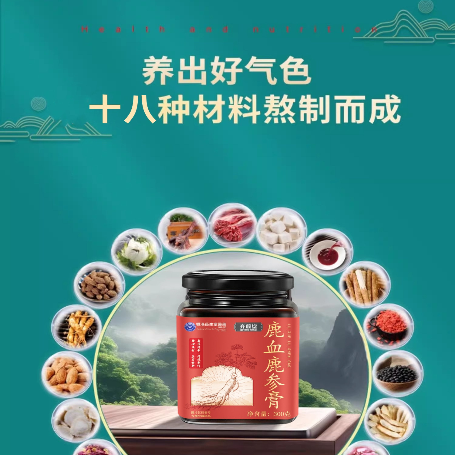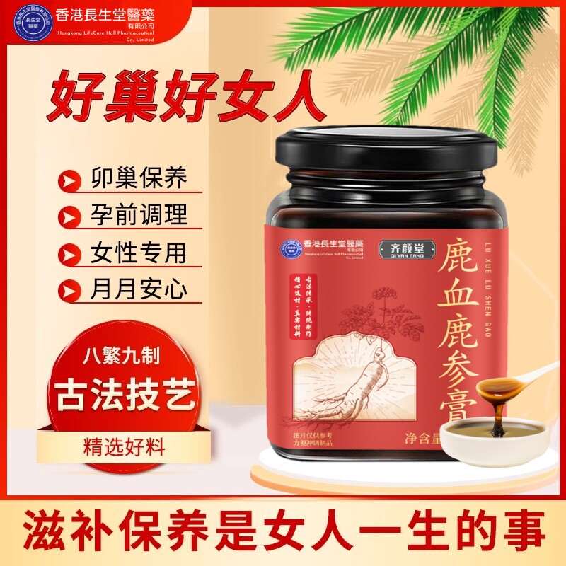 香港长生堂齐颜堂黑参五黑膏&鹿参鹿血膏300克罐装旗舰店正品包邮