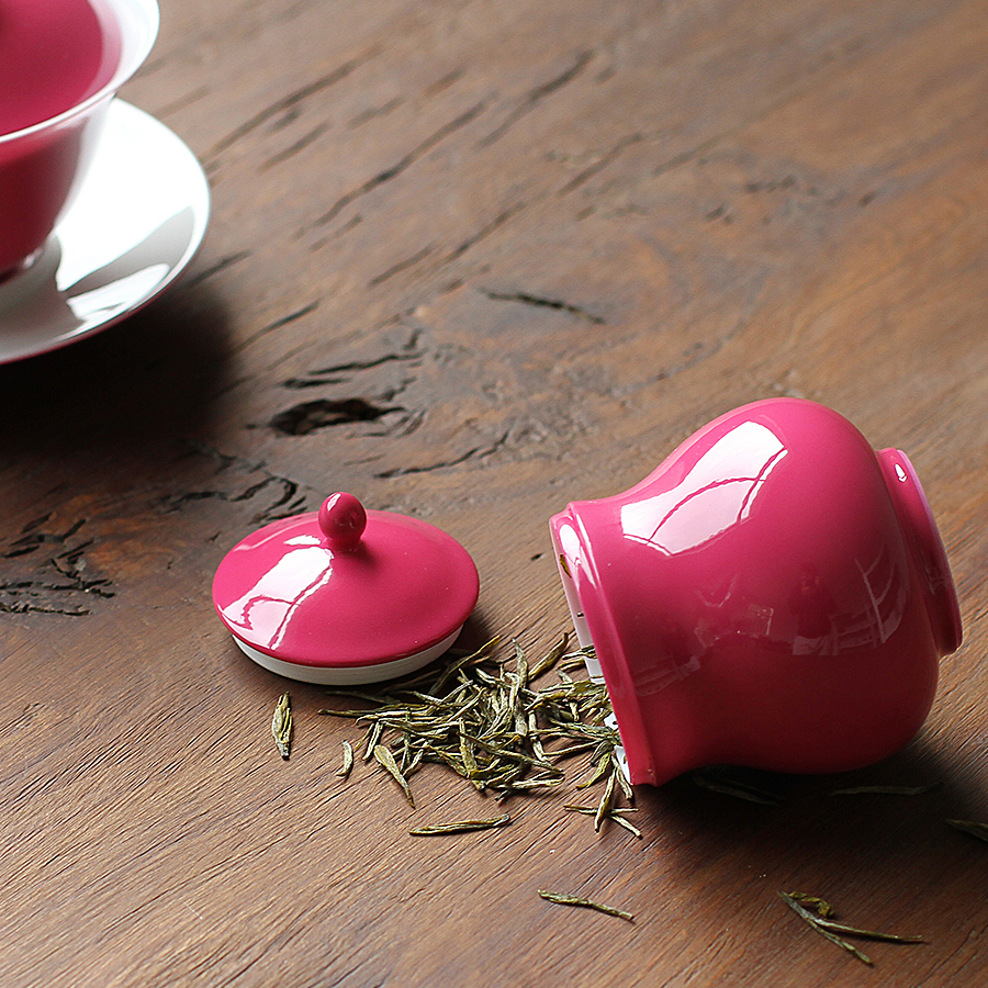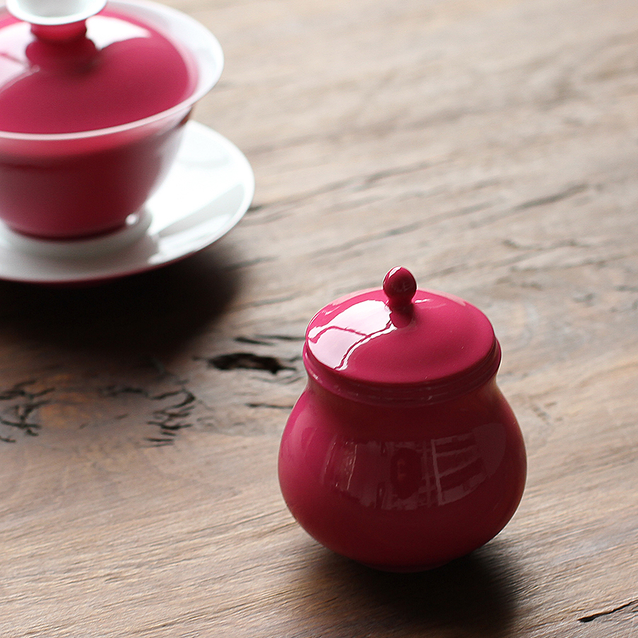 景德镇陶瓷茶叶罐茶罐小号随身罐胭脂水釉小茶叶罐