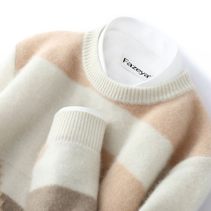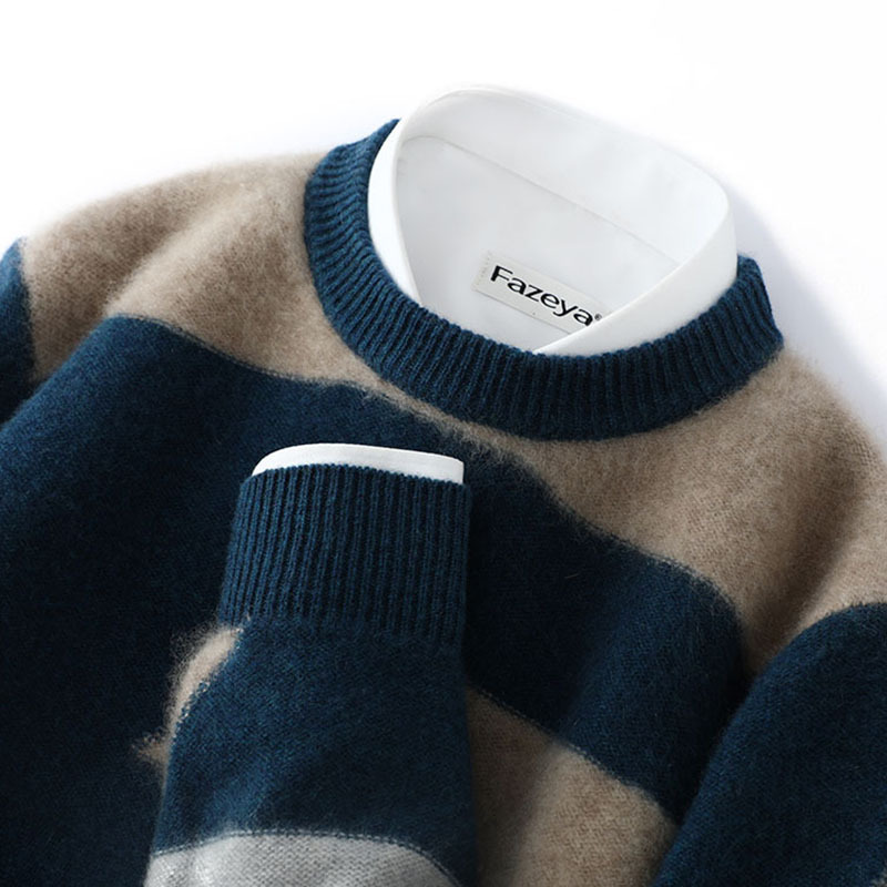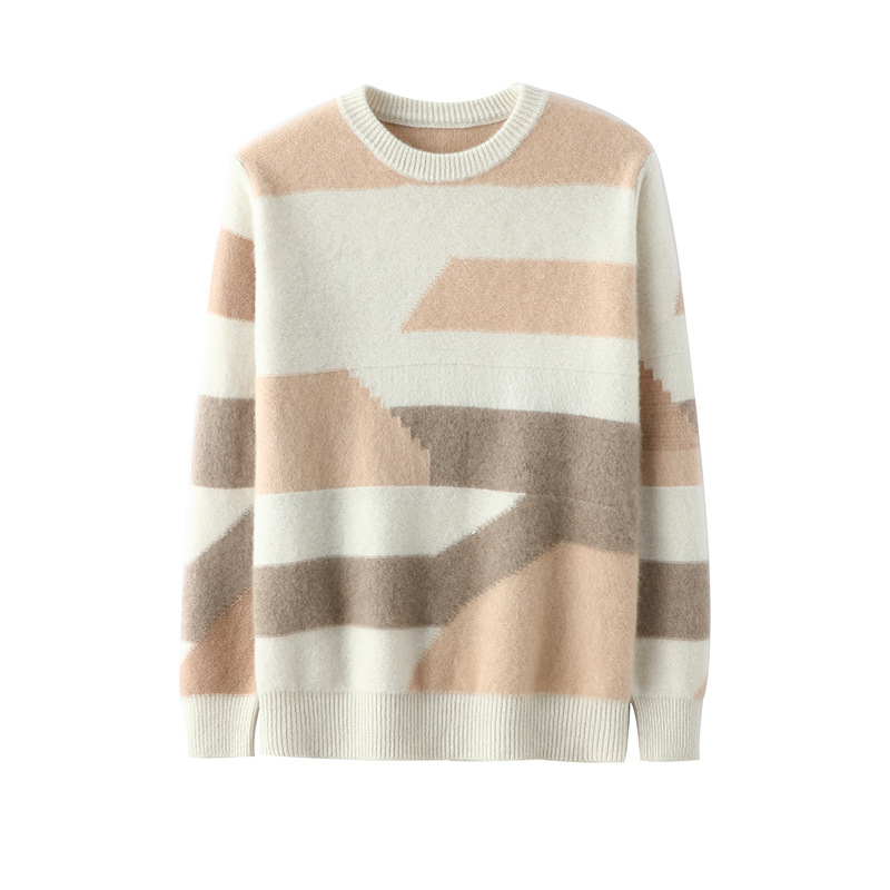 秋冬新款100%纯羊毛衫男士圆领毛衣拼色羊绒衫商务休闲针织打底衫