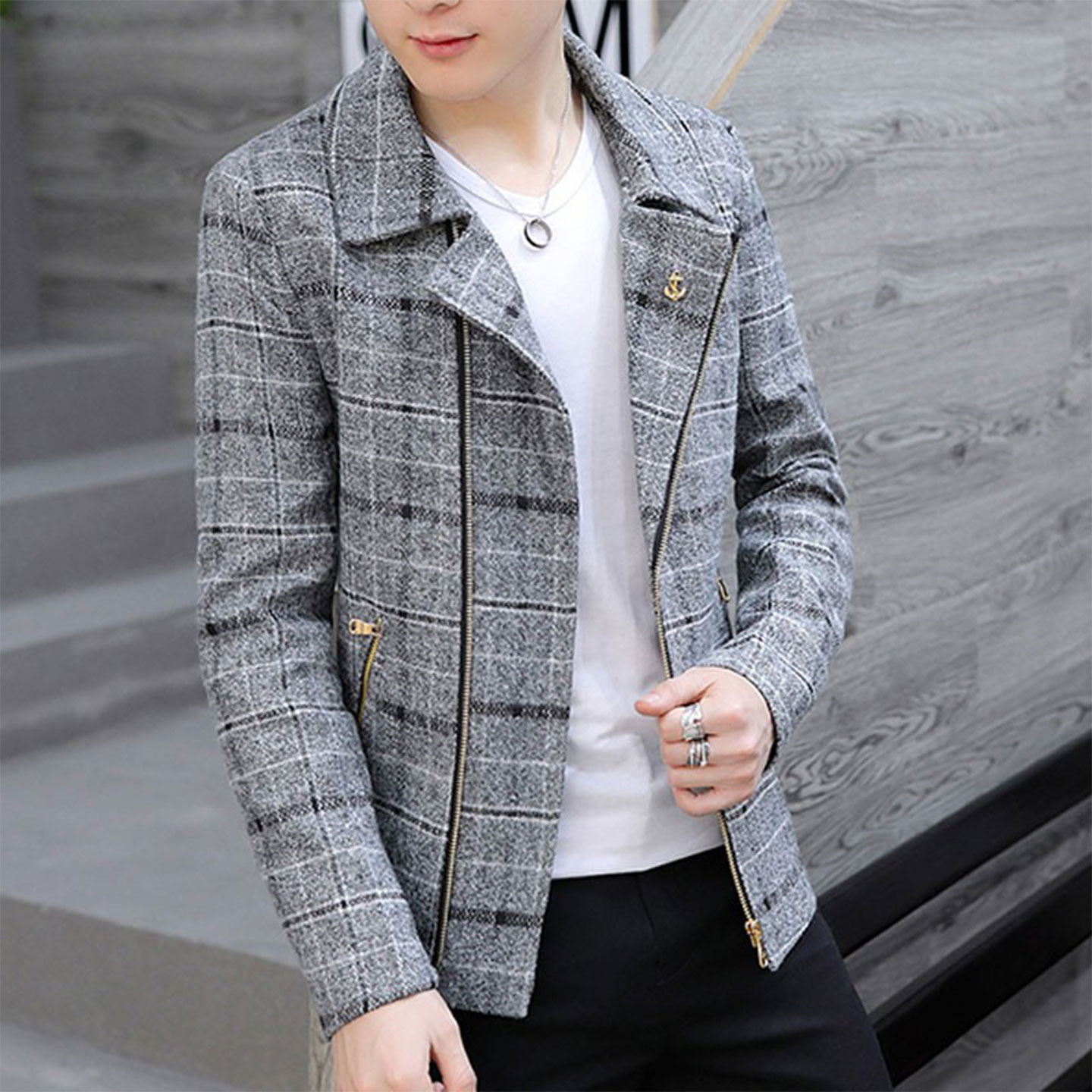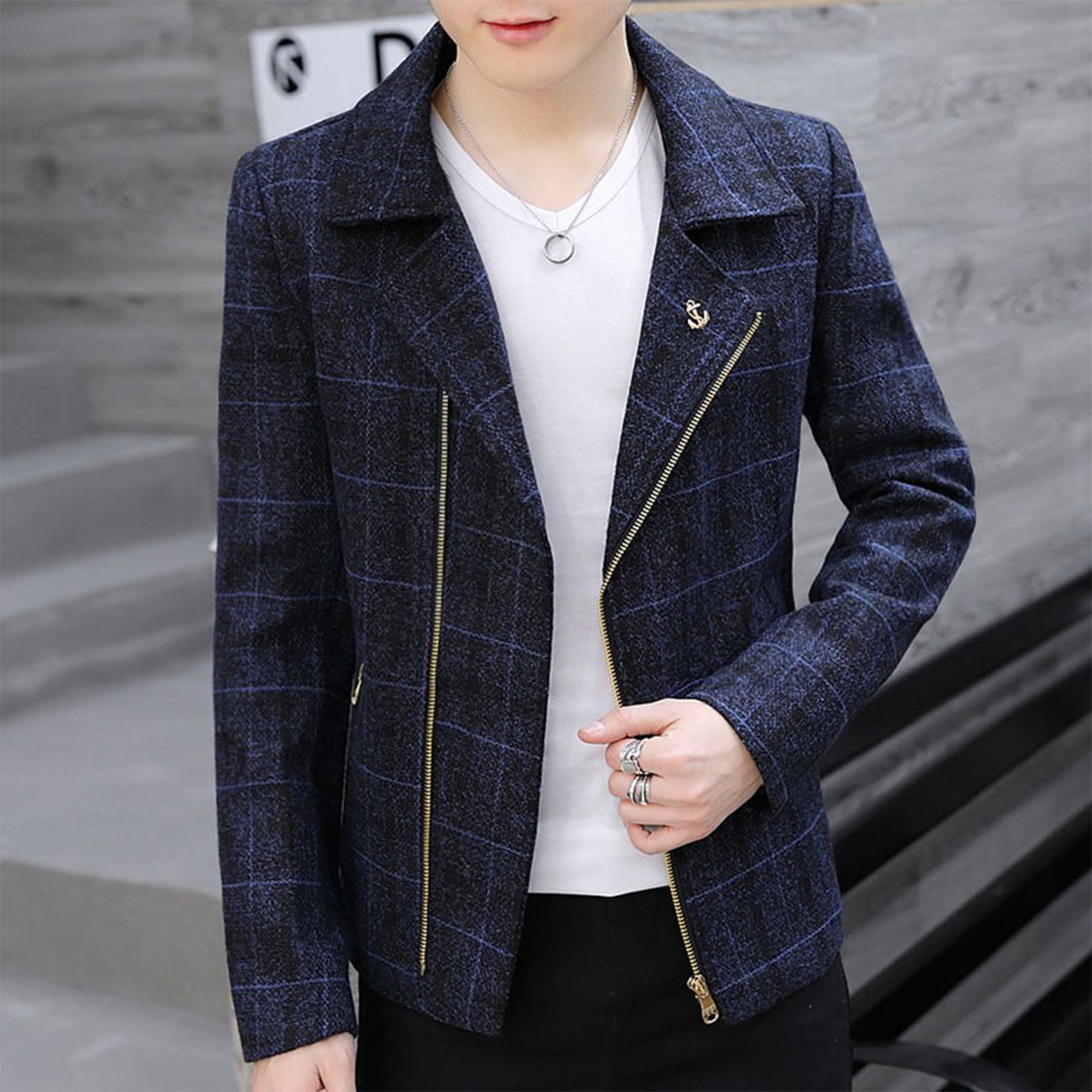 外套男士春秋季新款呢子修身设计感夹克男潮牌痞帅西装领加绒上衣