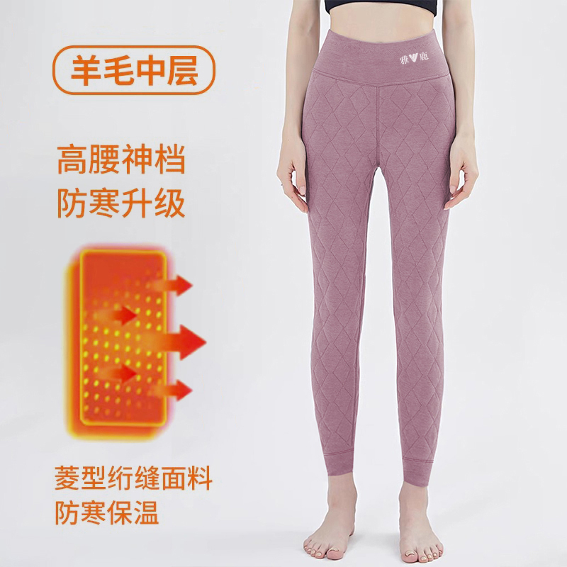 雅鹿加厚羊毛夹层男士保暖裤女士