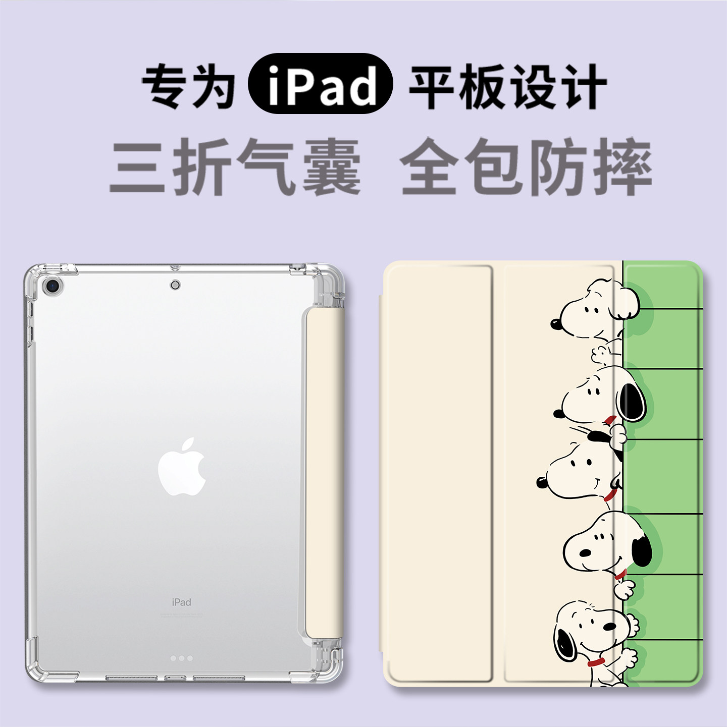适用ipadpro11保护套mini7蚕丝纹8.3英寸air6/5/4带笔槽iPad第九代十史努比pro12.9硅胶pro10.5防摔5/6代9.7