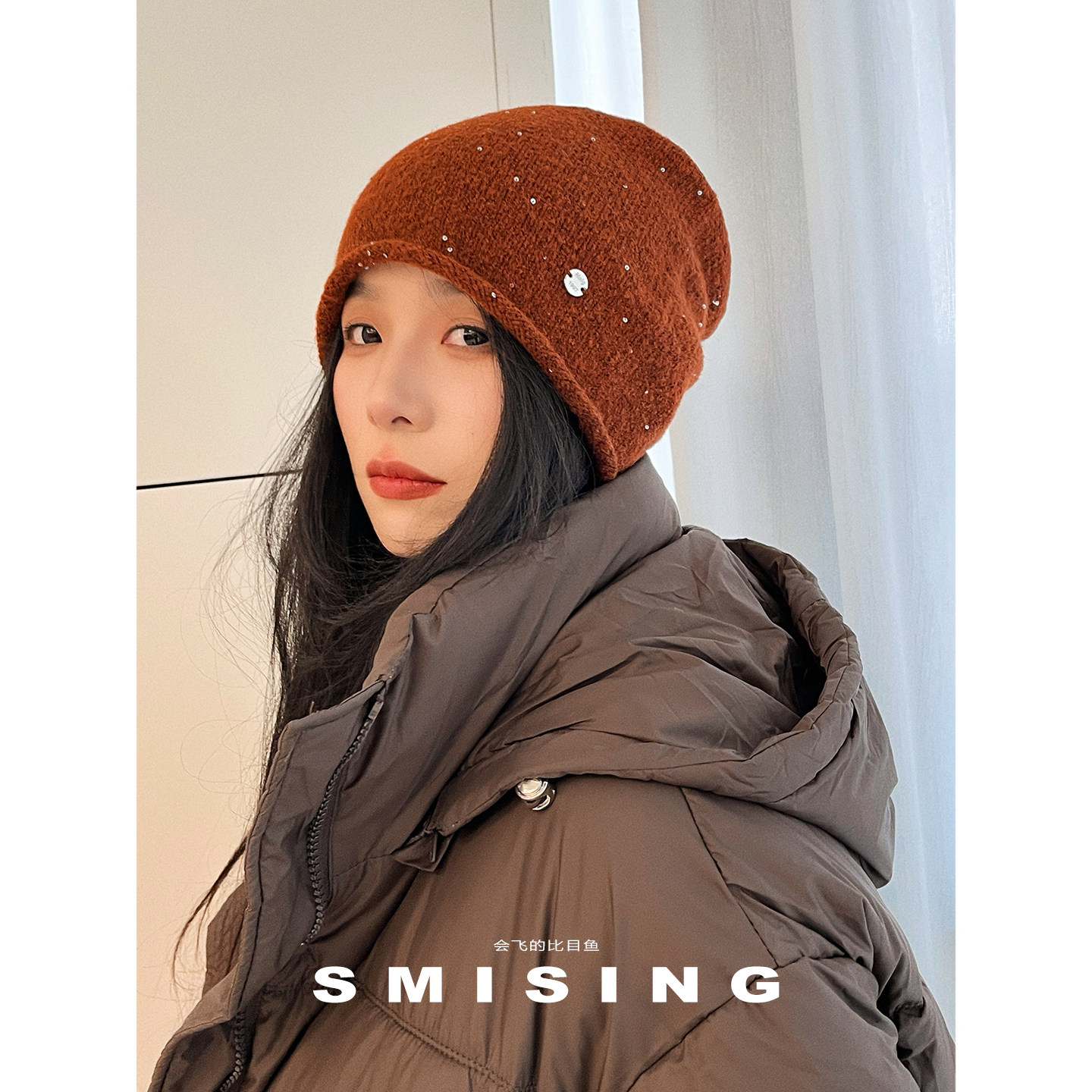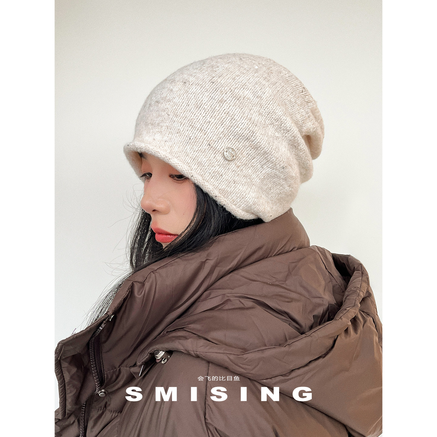 针织堆堆帽女秋冬护耳大头围