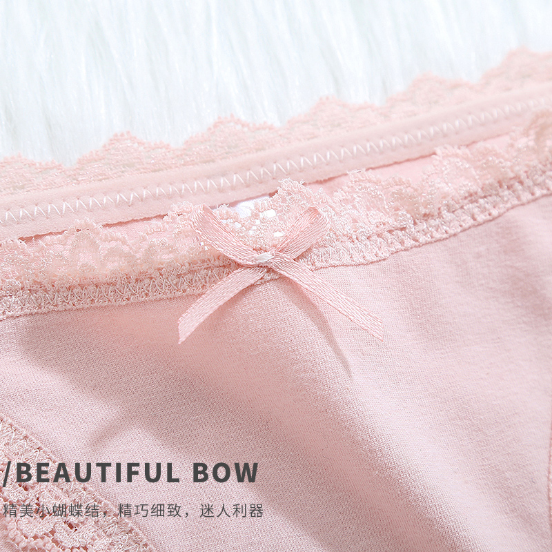 4条装性感蕾丝边内裤女纯棉少女冰丝无痕三角裤薄夏大码女士裤头