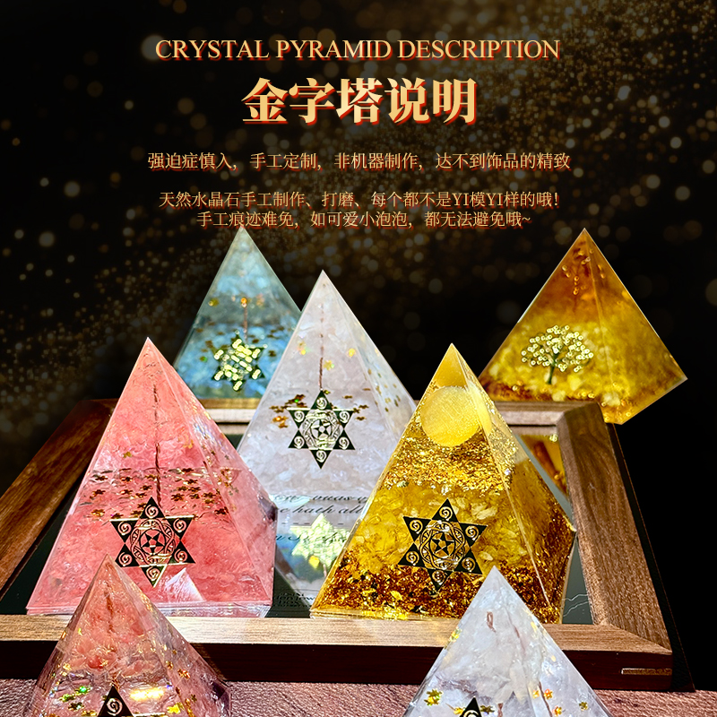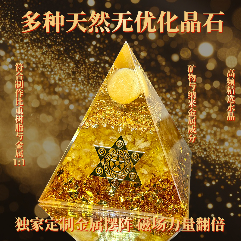 天然黄水晶招财金字塔正财偏财镇宅家居办公室车载摆件礼物装饰