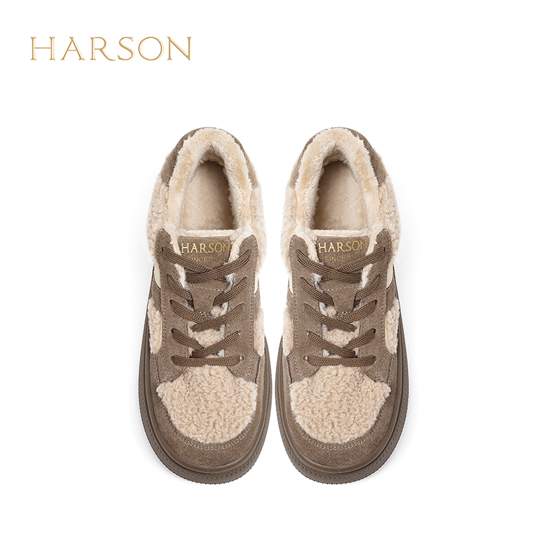 哈森冬季新款加绒毛毛鞋百搭增高休闲板鞋女HWCA240106