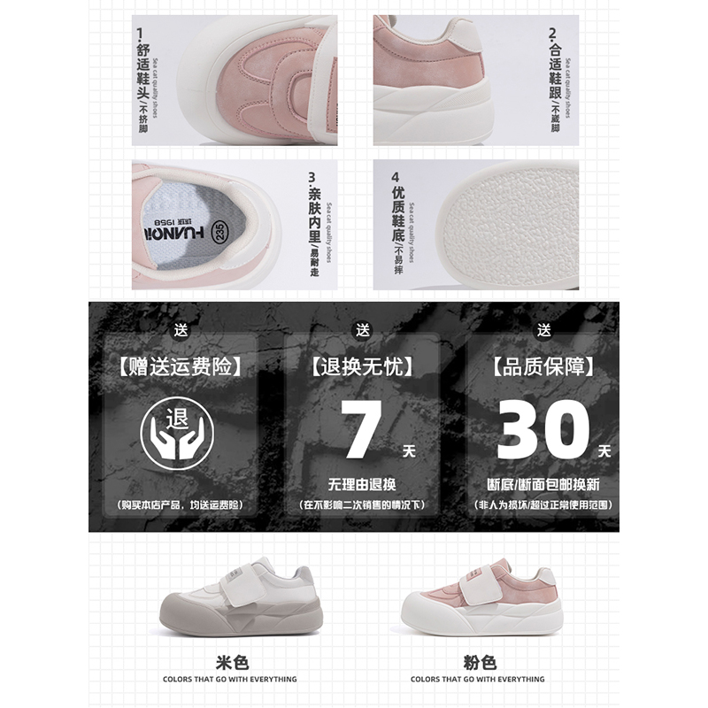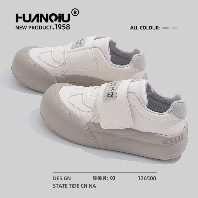 环球厚底板鞋女2025新款夏季魔术贴百搭小众面包鞋运动休闲小白鞋
