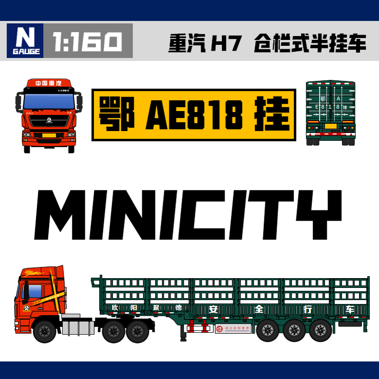 1/160N比例minicity塑料树脂材质仓栏半牵引车长约8厘米静态模型