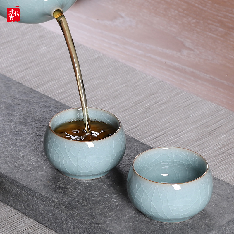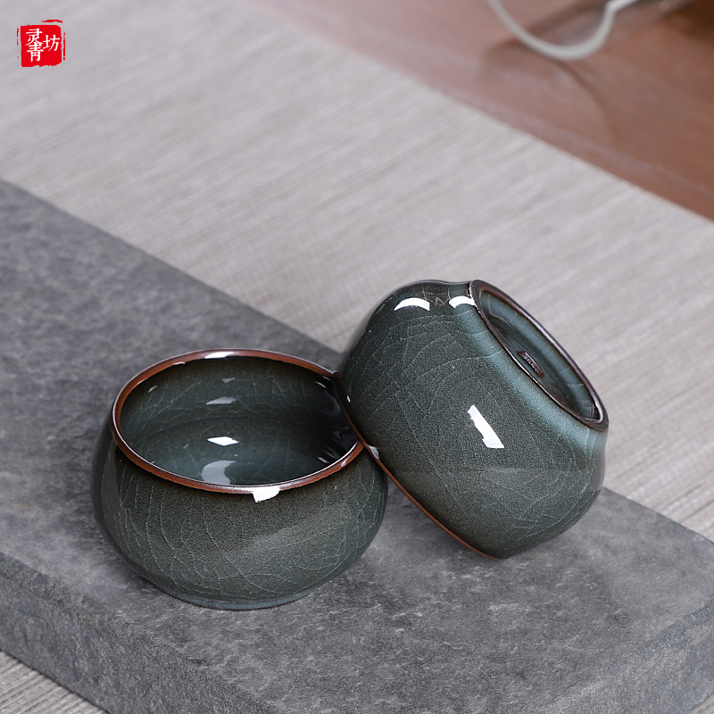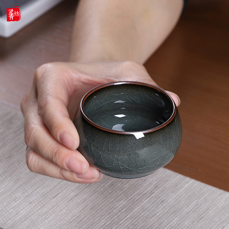 青瓷功夫茶杯单杯陶瓷品茗杯哥窑铁胎冰裂茶具小茶杯子单个主人杯