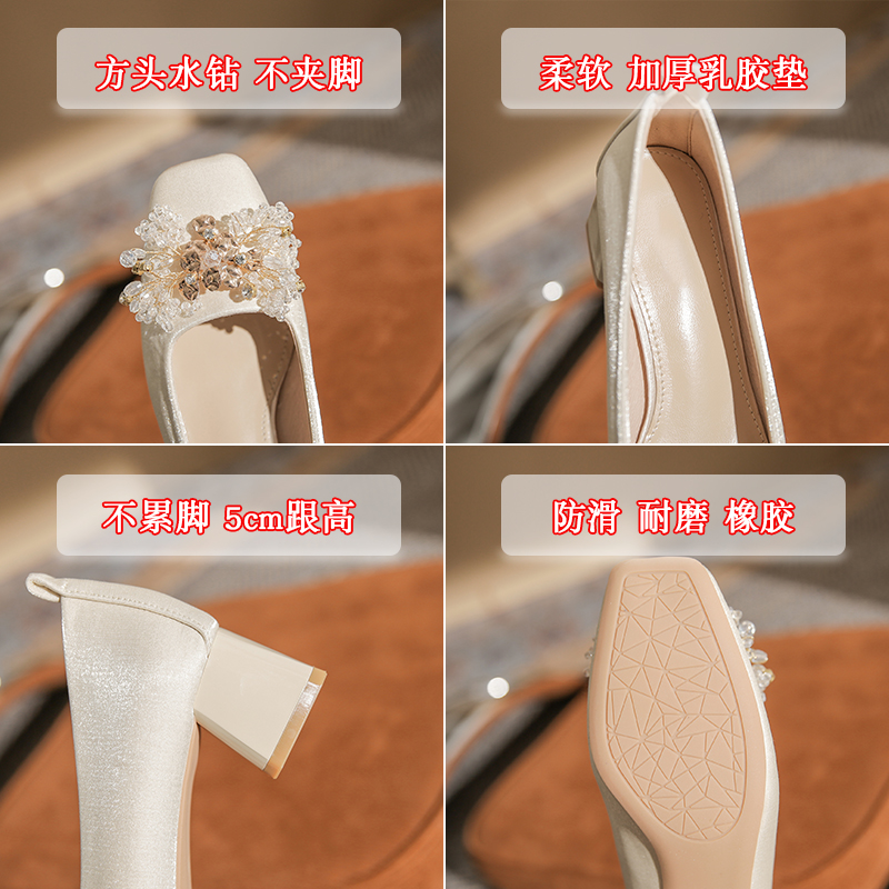 秀禾婚纱粗跟婚鞋女~赠送运费险