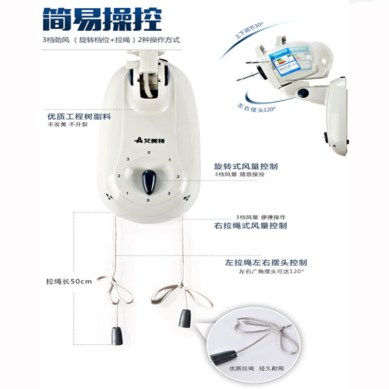 艾美特电风扇家用摇头壁挂