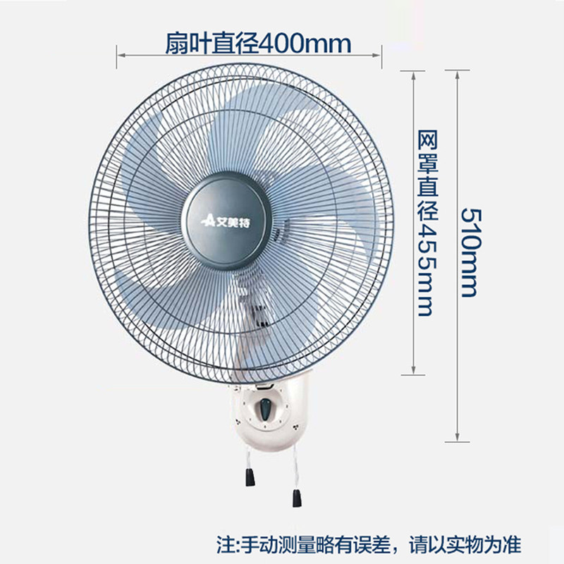 艾美特电风扇16寸家用墙壁扇省电壁挂扇宿舍摇头机械壁扇