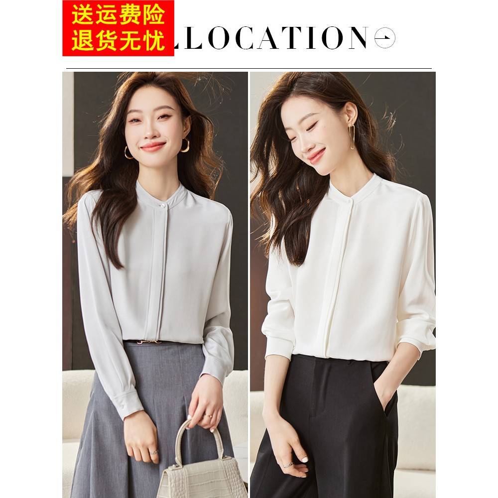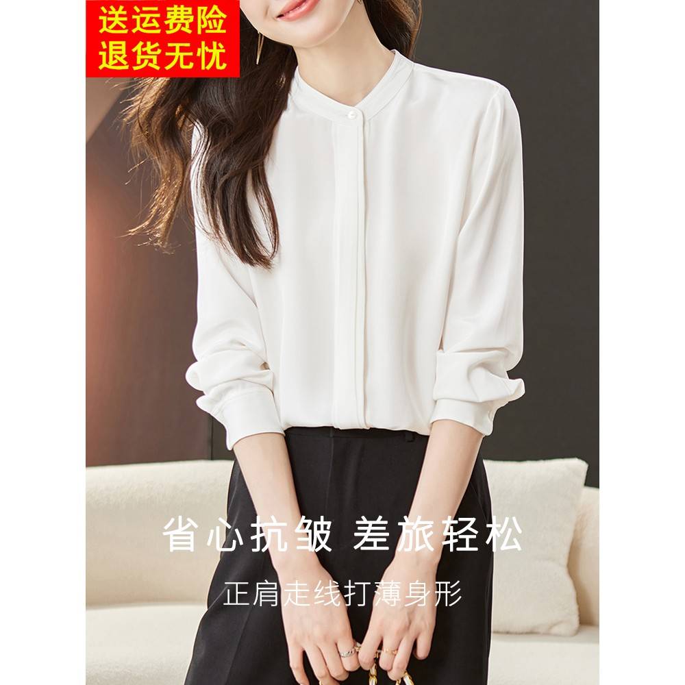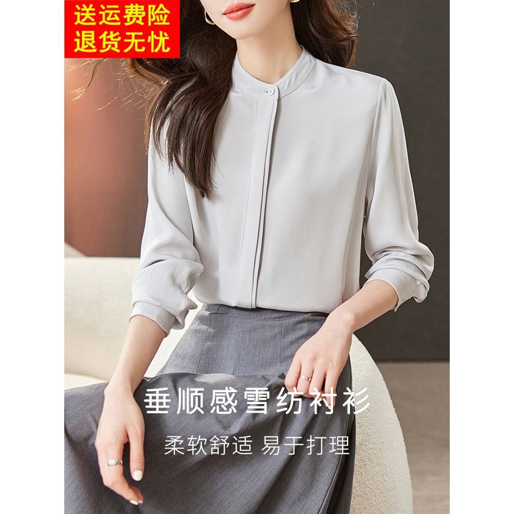 长袖白衬衫女2025年春季新款高级感通勤职业立领衬衫气质雪纺上衣