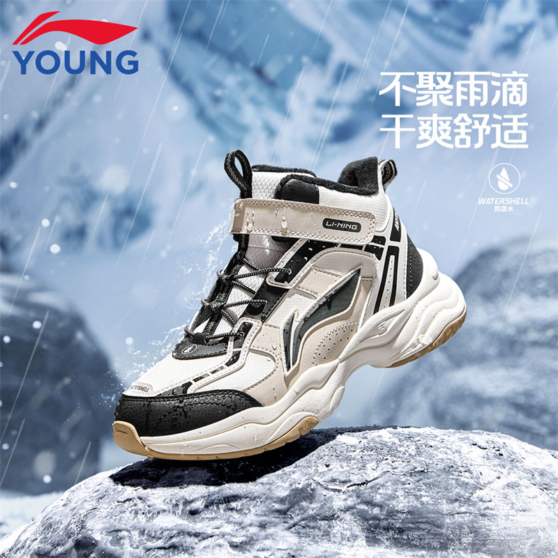 李宁童鞋儿童运动鞋男童2025冬季新款加绒保暖防滑软底休闲二棉鞋