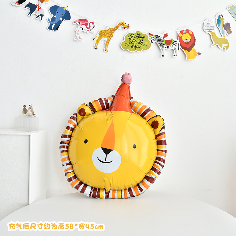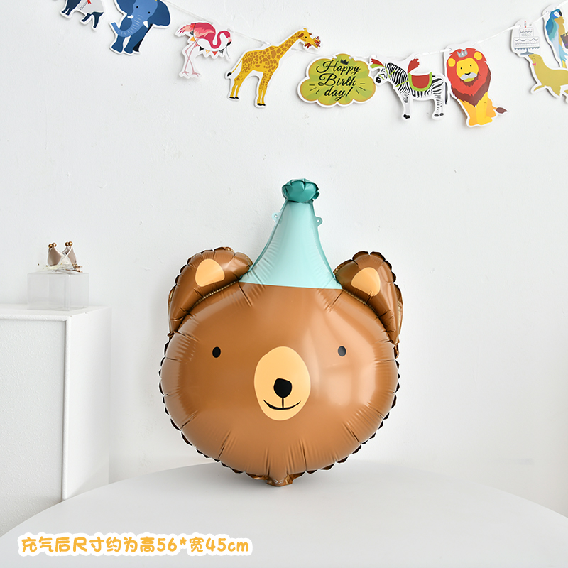 新款动物铝膜气球生日帽卡通宝宝周岁生日布置派对儿童男孩女孩