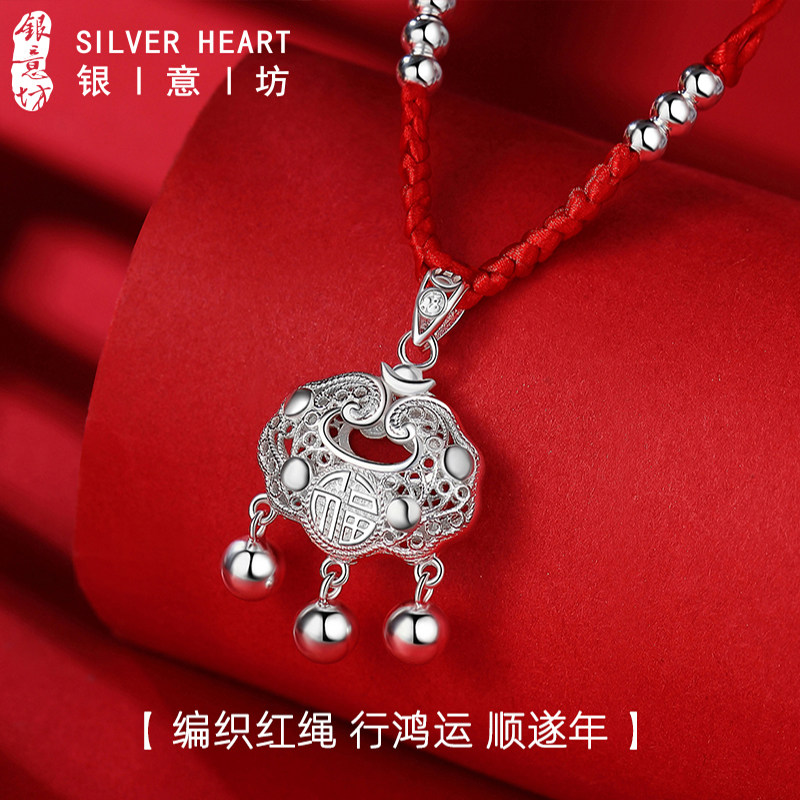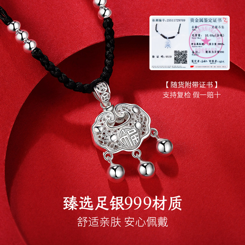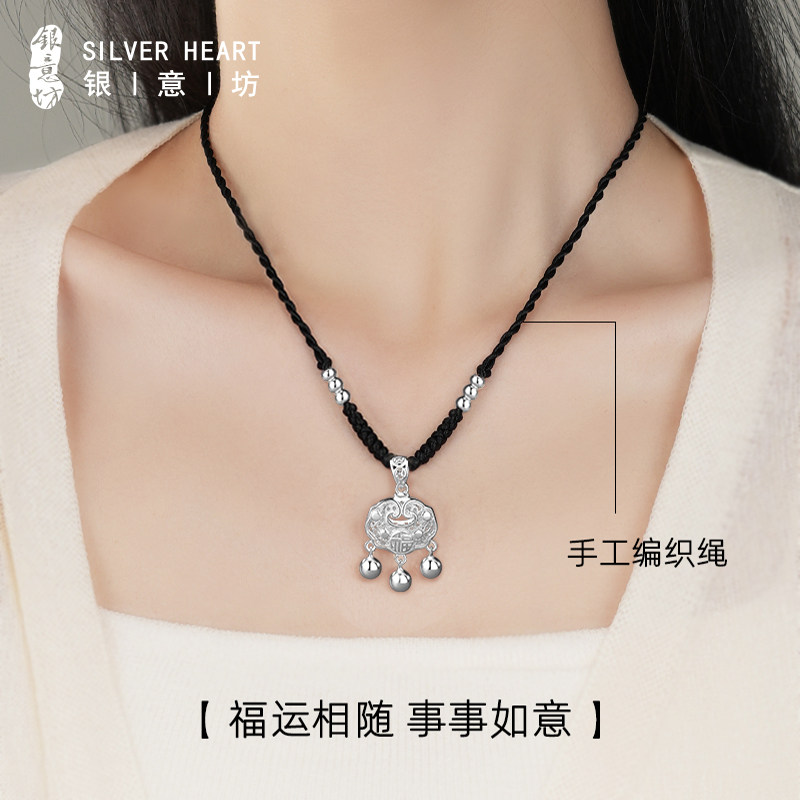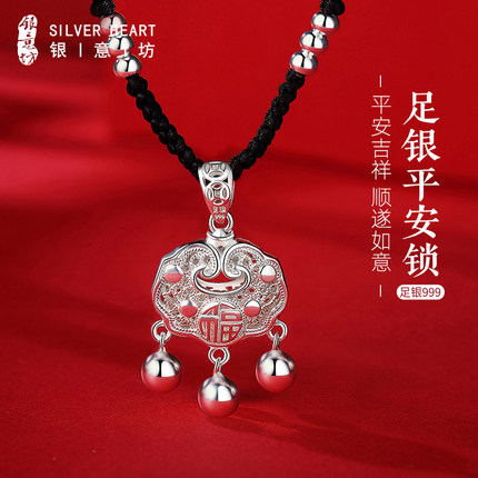 平安锁纯银999新中式项链女款毛衣链长款长命锁吊坠小众生日礼物