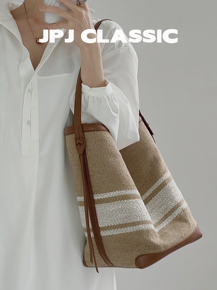 jpjclassic帆布托特包女单肩斜挎大容量通勤包慵懒风条纹购物袋潮