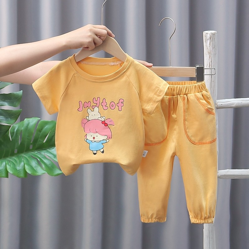 女童夏装套装2025新款儿童休闲运动装洋气女宝宝短袖长裤两件套潮