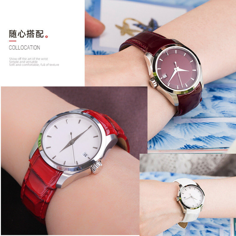 适配天梭1853表带库图女T035210A酒红色原装款弧口真皮表带18mm