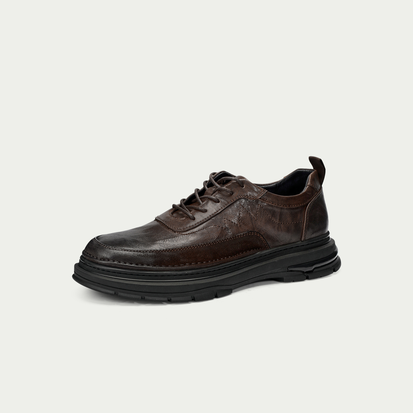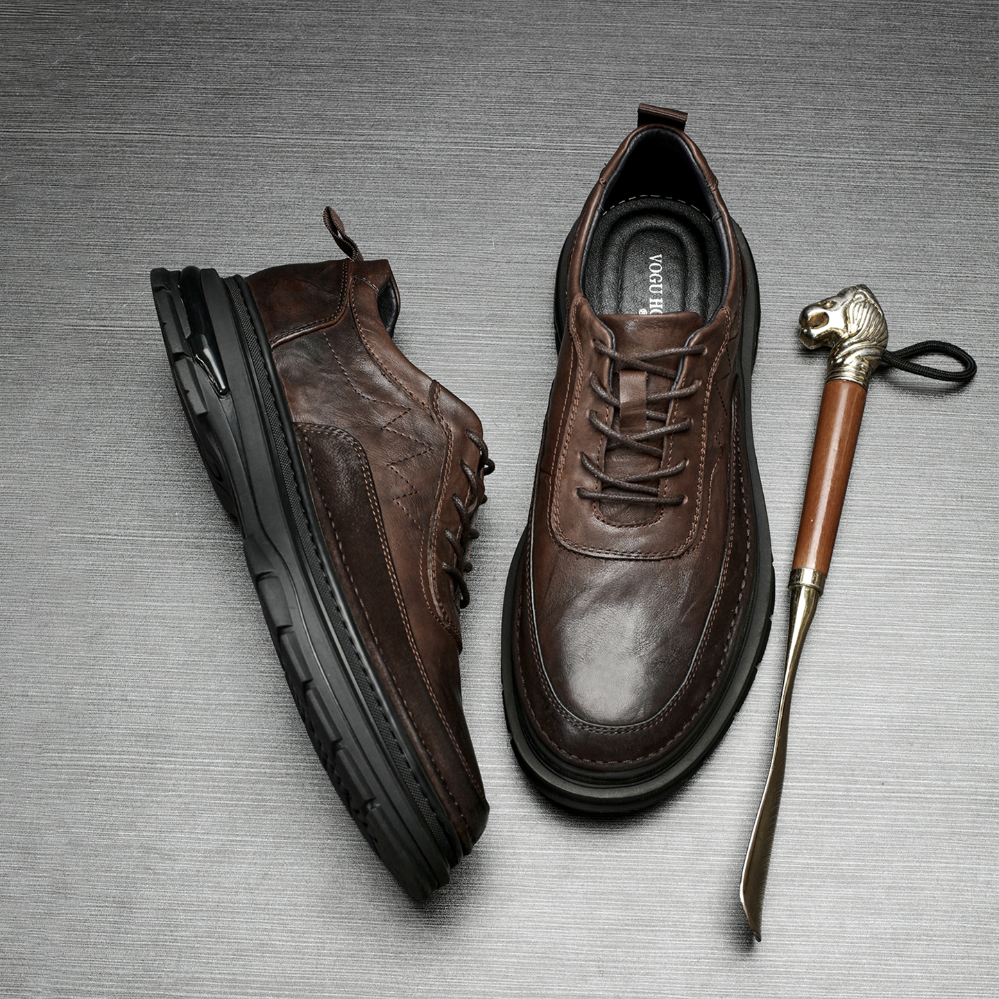 男鞋2025秋季新款气垫皮鞋潮圆头透气厚底休闲鞋系带户外运动鞋子