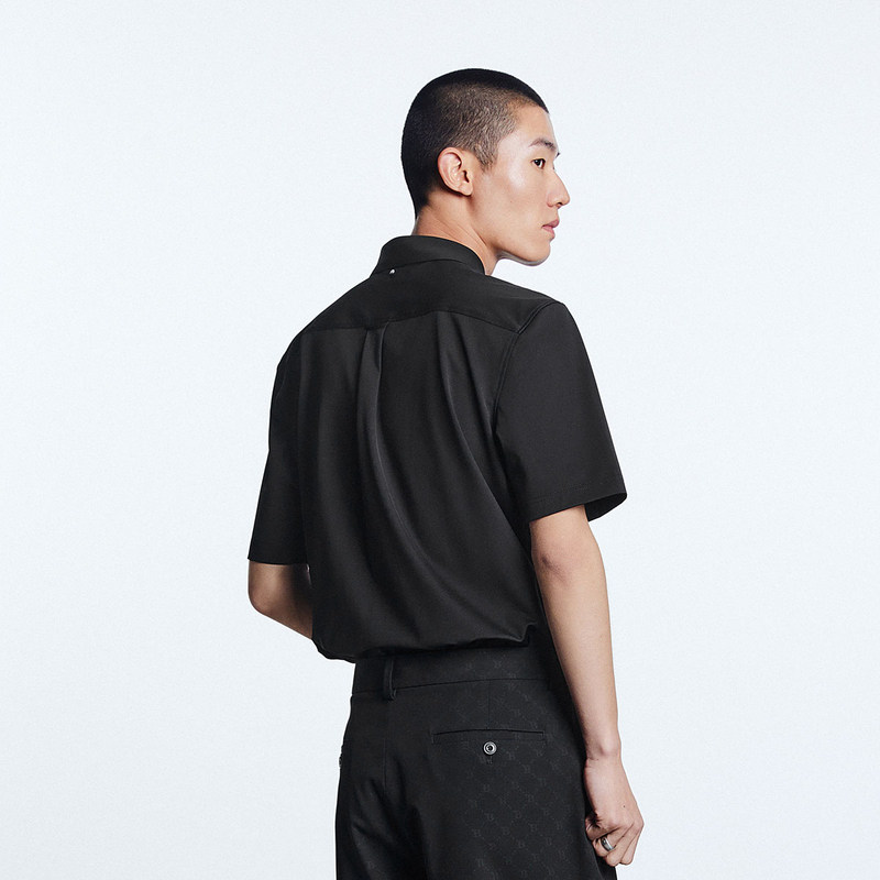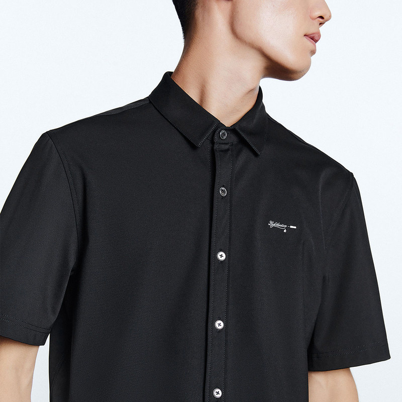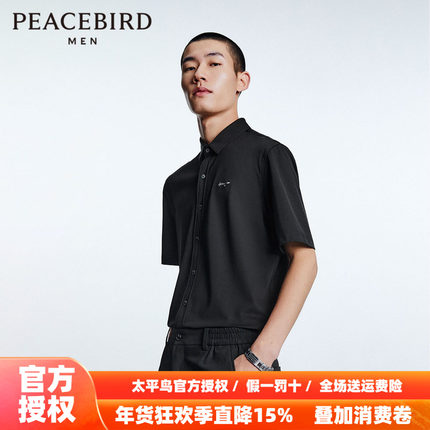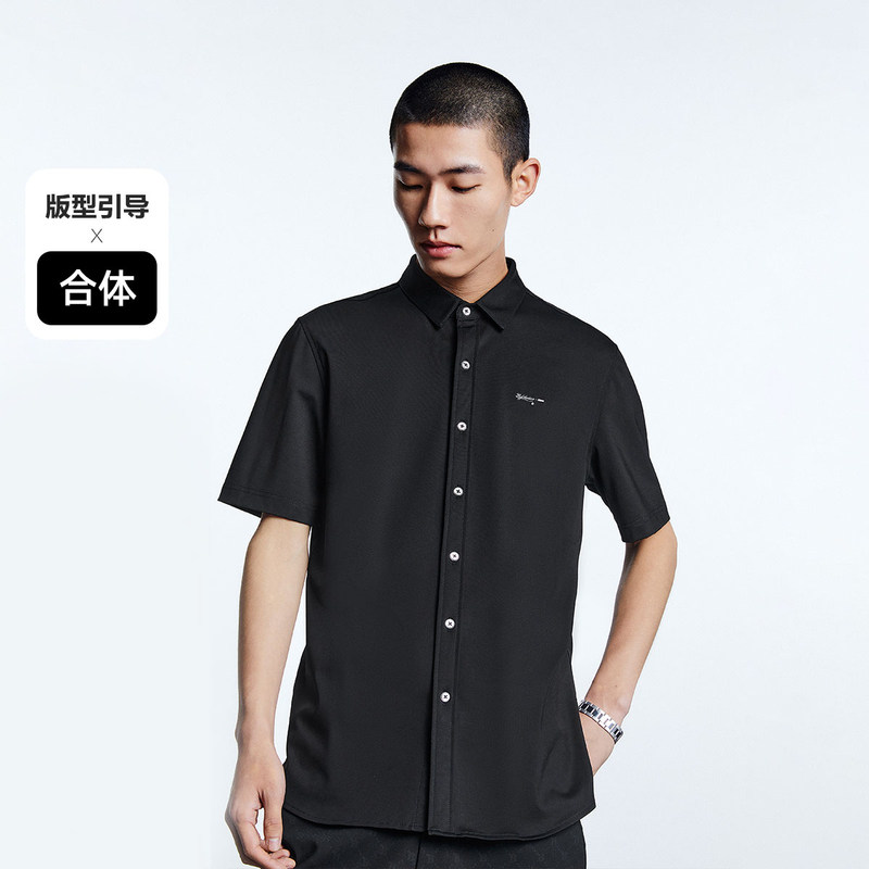 【断码钜惠】太平鸟男装字母刺绣衬衫商务短袖衬衣B1CCD2401