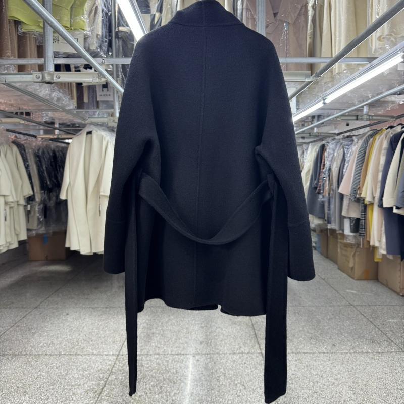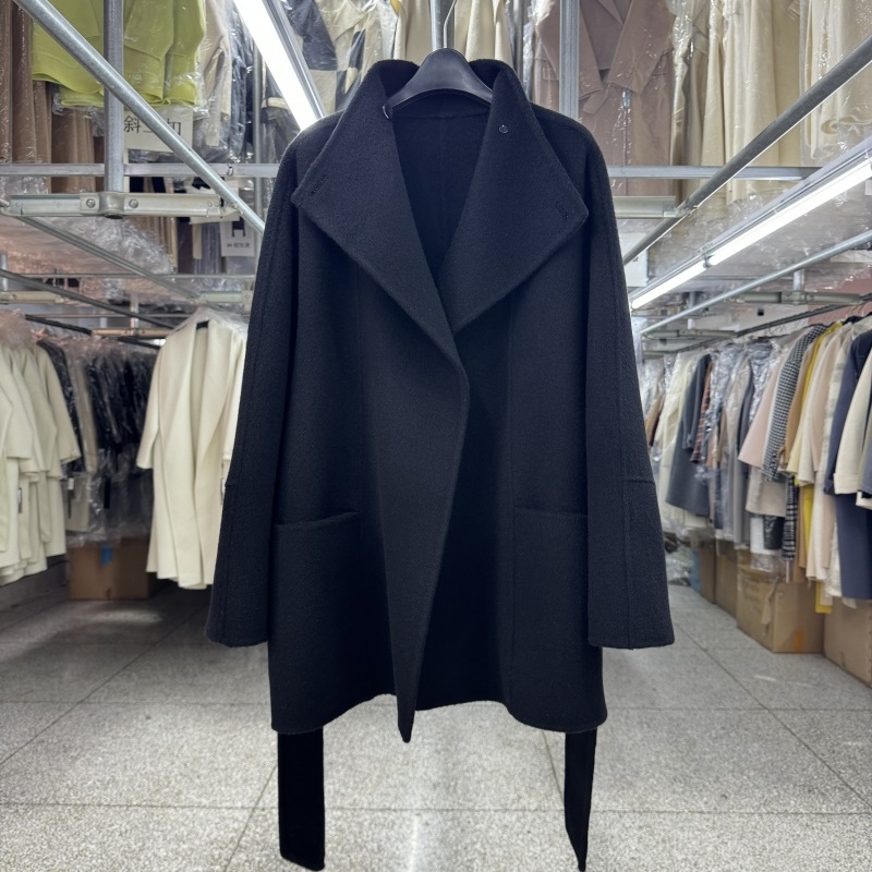 牦牛绒雅致灰立领双面羊毛大衣女短款秋冬新款一粒扣简约毛呢外套