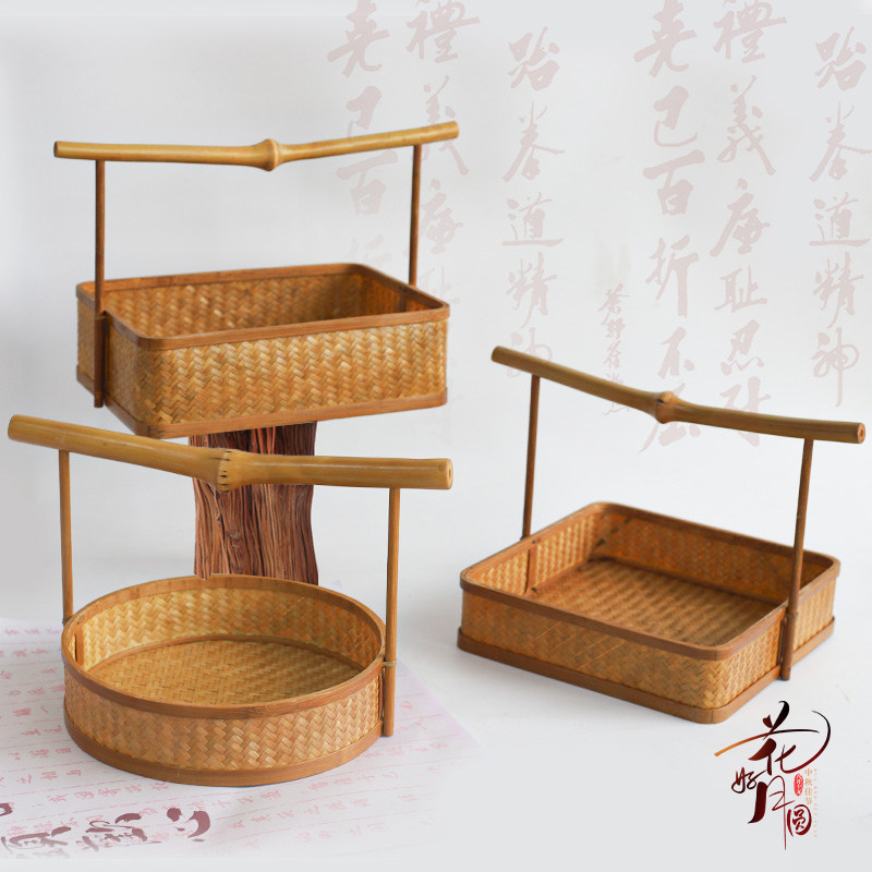复古中式国风竹节花篮高档高端点心蛋糕月饼礼盒手提花篮水果篮