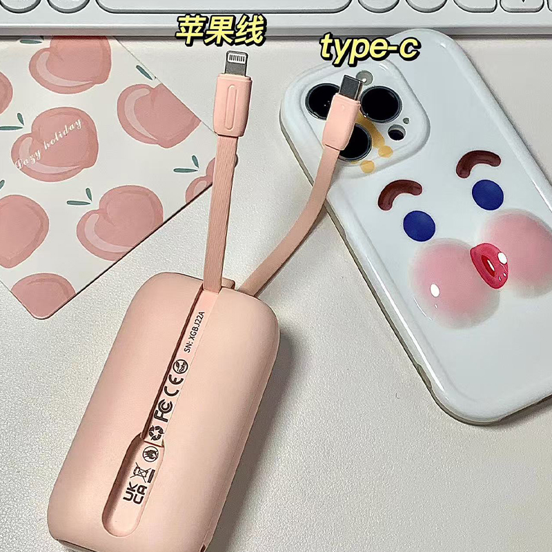 机乐堂充电宝超薄小巧便携20000毫安标识自带线大容量快充适用苹果迷你移动电源可上飞机