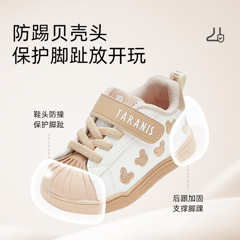 泰兰尼斯男宝宝学步鞋春秋新款贝壳头儿童板鞋女童防撞休闲机能鞋