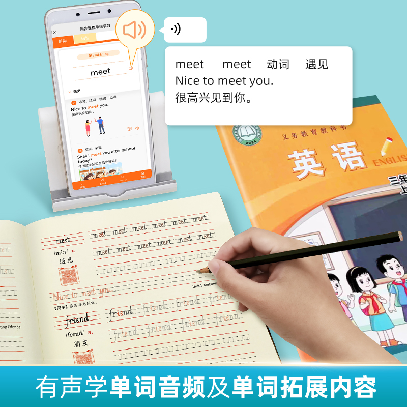 25新版【闽教版】小学英语字帖3-6年级下册上册福建省同步临摹字帖描红本3三4四5五6六年级单词句子手写练字帖 英文字母描红练习本