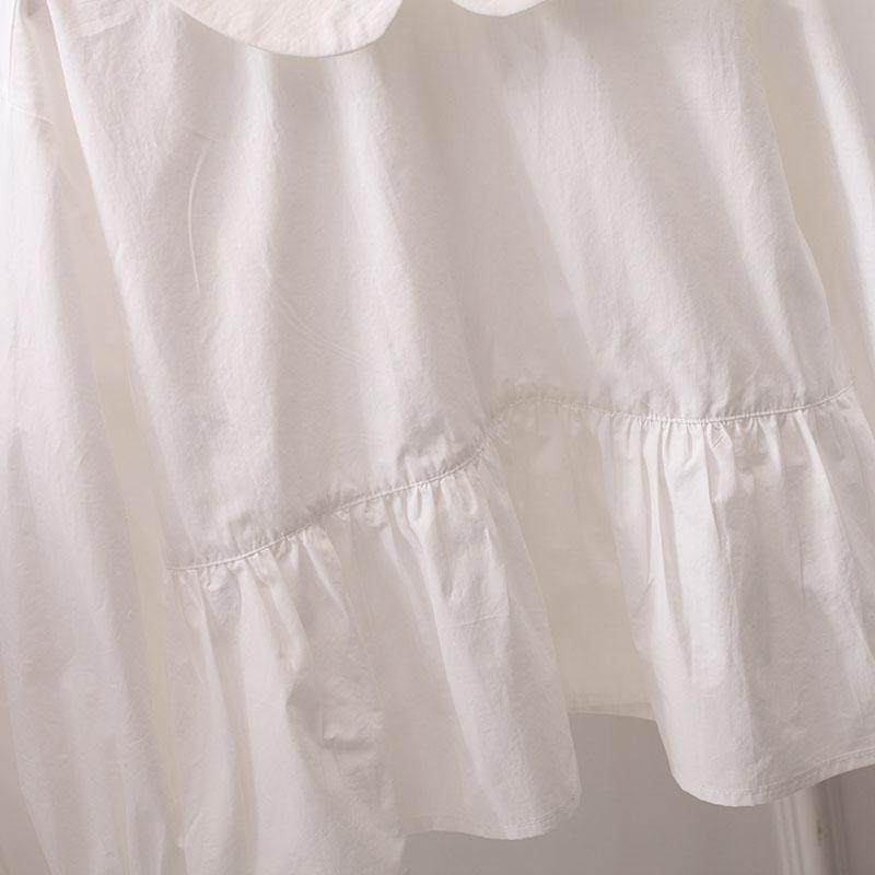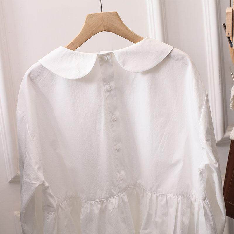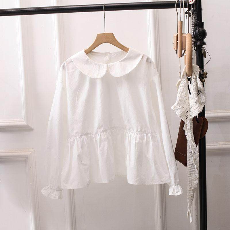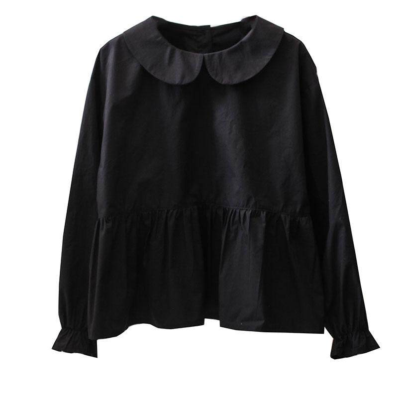 日系复古娃娃领白衬衫女上衣宽松荷叶边文艺减龄百搭长袖黑色大码