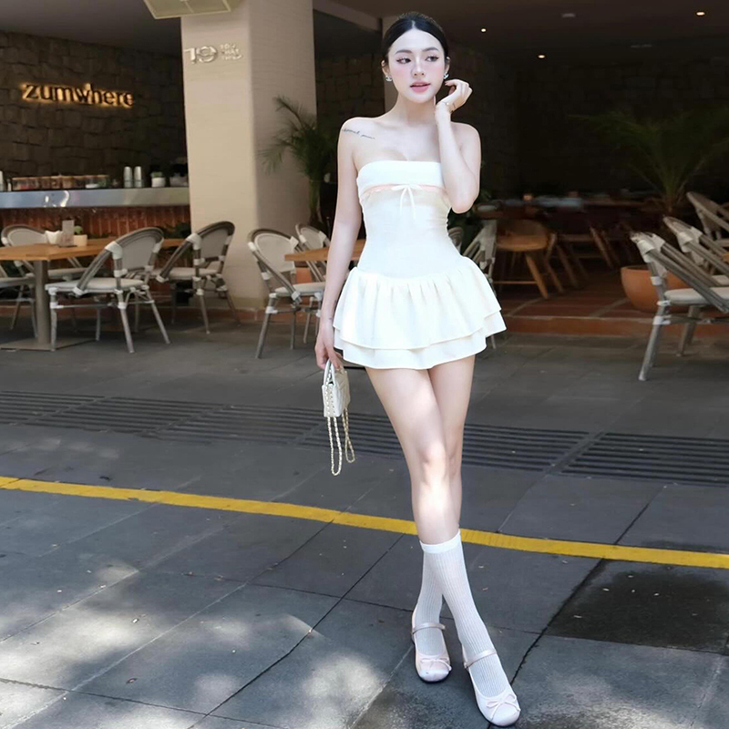 可甜可盐减龄蕾丝边抹胸连衣裙