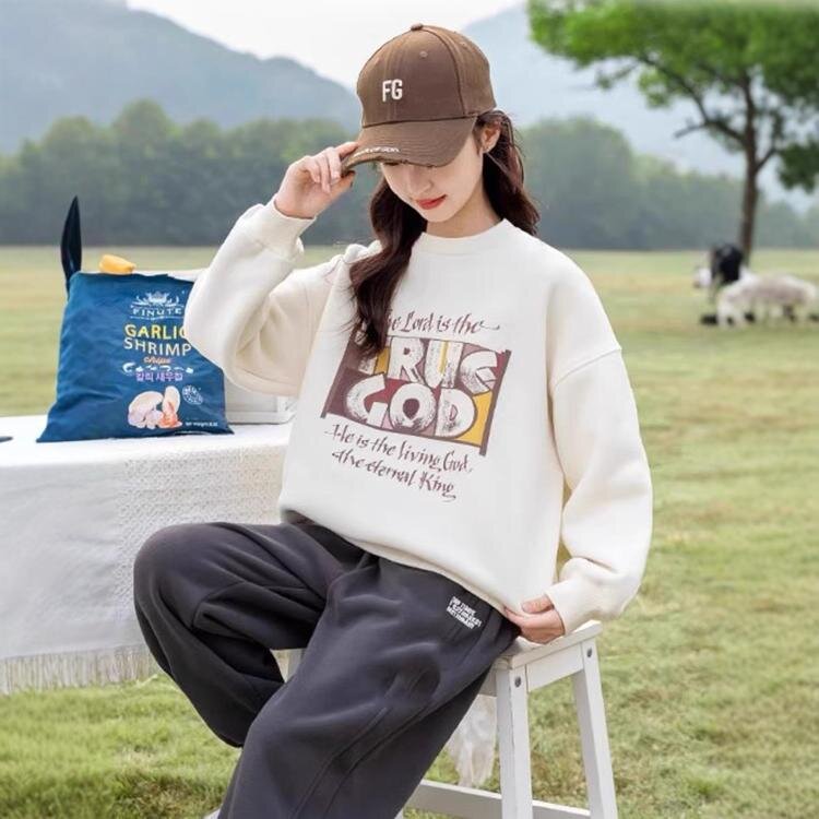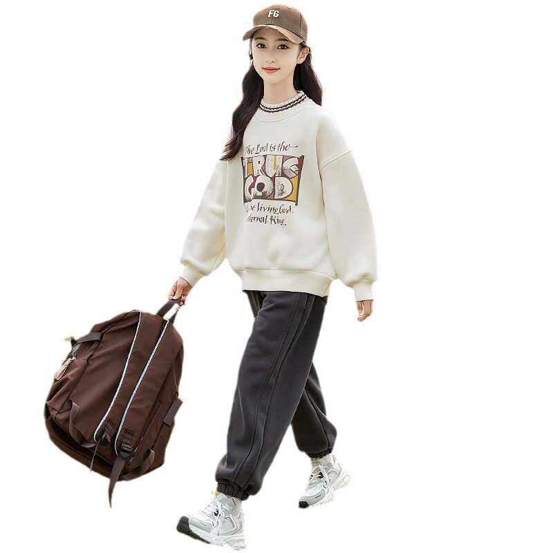 女童卫衣加绒加厚2025新款洋气儿童宽松衣服女大童上衣运动春秋款